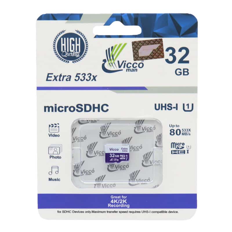 کارت حافظه micro SDHC ویکومن مدل Extra U1 80MB/s ظرفیت 32 گیگابایت + گارانتی مادام العمر 407,000 تومان