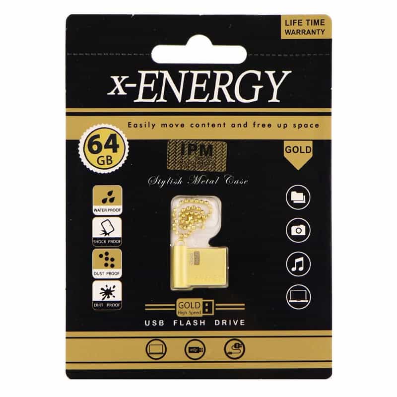 استفاده از فلش مموری ها برای کاربران به امری ضروری تبدیل شده است، برای انتقال و یا همیشه همراه داشتن اطلاعات خود اولین چیزی که به ذهن کاربران می رسد، استفاده از فلش مموری ها می باشند. امروزه حجم عکس و فیلم ها در حال زیاد شدن می باشند و نیاز کاربران به فضا های ذخیره سازی بیشتر شده است. کمپانی ایکس انرژی برندی معروف و معتبر بوده است که فلش هایی با امنیت بالا و کیفیت بالا ساخته است. فلش مموری ایکس انرژی مدل Gold می تواند میزبان اطلاعات تا ظرفیت ۶۴ گیگابایت باشد و از آن ها پشتیبانی نماید. این فلش دارای ابعاد ۲۰ * ۱۹ * ۵ میلی متر و وزن ۳٫۴ گرم بوده است که اندازه بسیار جمع و جور و بند انگشتی می باشد و جای زیادی را اشغال نخواهد کرد. فلش ایکس انرژی مقاومت بالایی در برابر ضربه از خود نشان داده است و به خوبی از اطلاعات مهم شما محافظت و نگهداری می نماید. یک زنجیر نیز برای راحتی کاربران در پک قرار گرفته شده است تا بتوانید با استفاده از آن فلش خود را به جا کلیدی و یا بند کیف خود متصل نمایید و در همه جا همراه خود داشته باشید.
