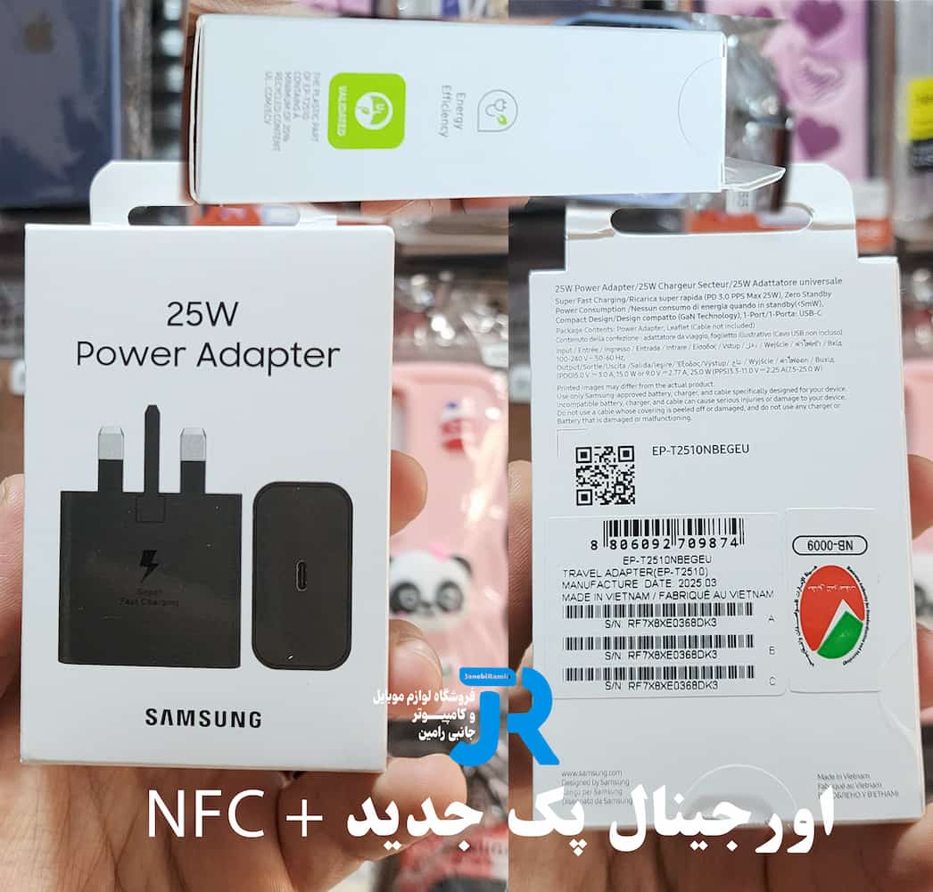 با افزایش کالاهای فیک و تقلبی سامسونگ نسخه جدید از محصول خود را رونمایی کرد که پک محصول خود را تغییر داد و یک چیپ NFC هم داخل آداپتور خود قرار داد وقتی شما NFC گوشی خود را روشن کنید و آن را روی آداپتور قرار دهید گوشی شما مستقیما وارد سایت رسمی سامسونگ میشود و مشخصات محصول را نشان میدهد. لازم به ذکر است که این محصول نسخه ای جدید از آداپتور 25 وات سامسونگ است و شرکت سامسونگ جدا از تغییرات نشان دهنده اصالت، کیفیت این نسخه را نسبت به قبلی بالاتر برده است.