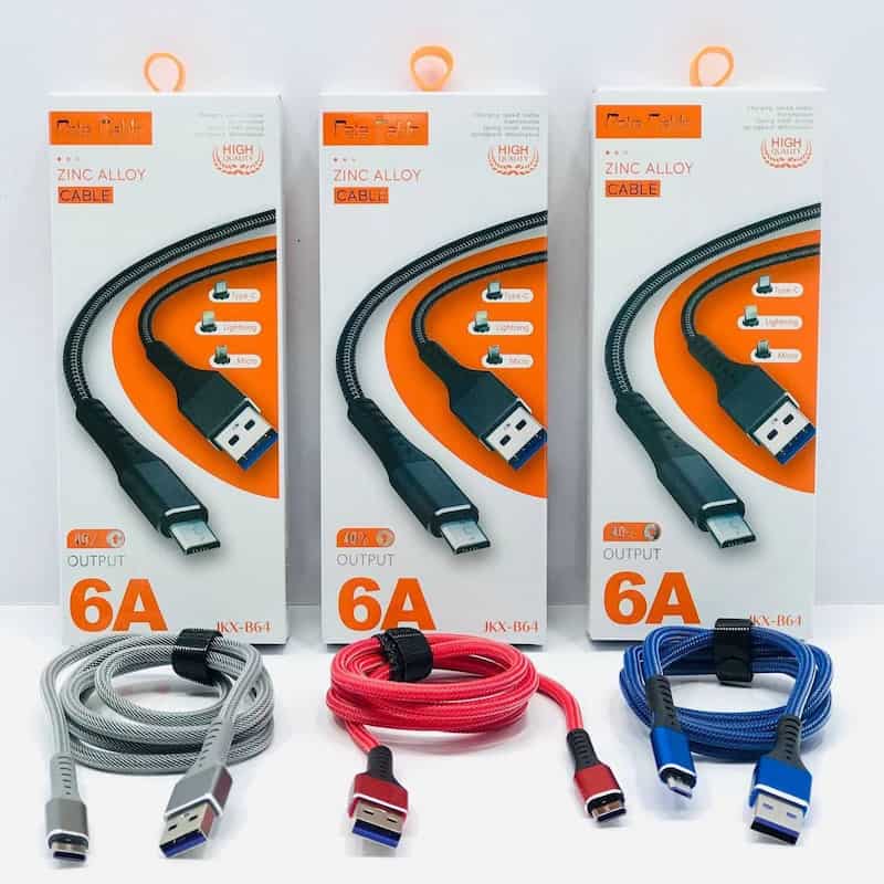 کابل JKX-B۶۴ از کنفی ساخته شده است که ضد برش است و به راحتی نمیتوان آن را برش زد پس نگران پاره شدن کابل نباشید. نوع شیلد JKX-B۶۴ از فلز میباشد و میتوان از آن ۶A سوپر فست شارژ گرفت. طول کابل ۱۰۰ سانتی متر میباشد که همراه با آن یک سیم جمع کن تقدیم شما عزیزان میشود.