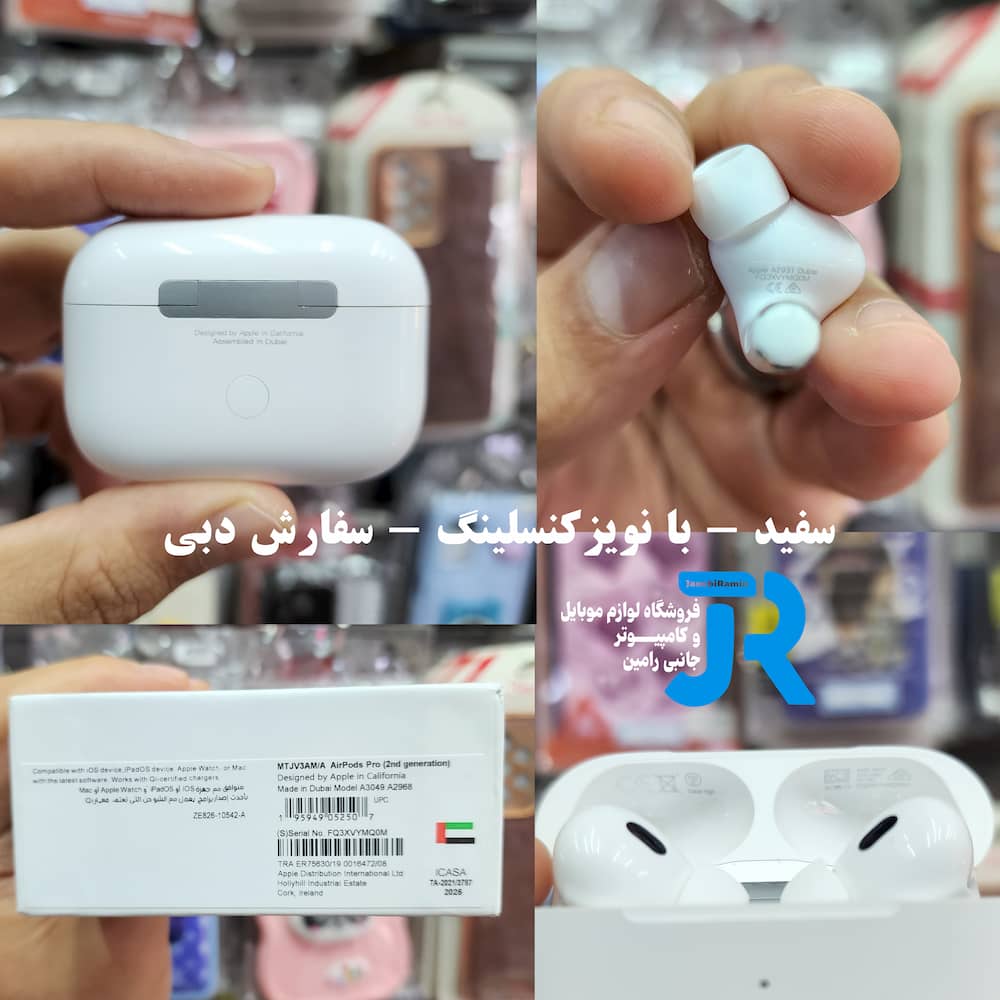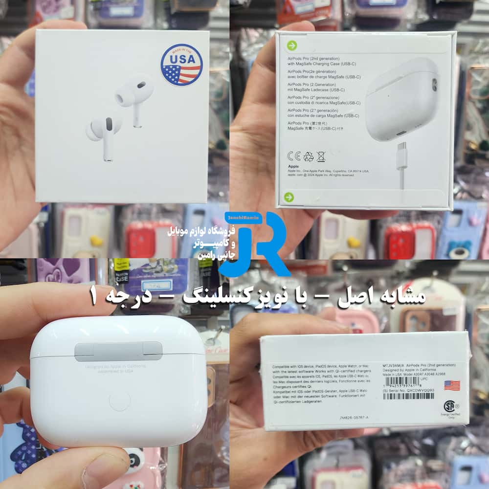 - اقلام همراه کیس شارژر بی سیم,سه عدد سرگوشی (سایزهای کوچک، متوسط و بزرگ),کایل تبدیل USB-C به لایتنینگ,دفترچه راهنما