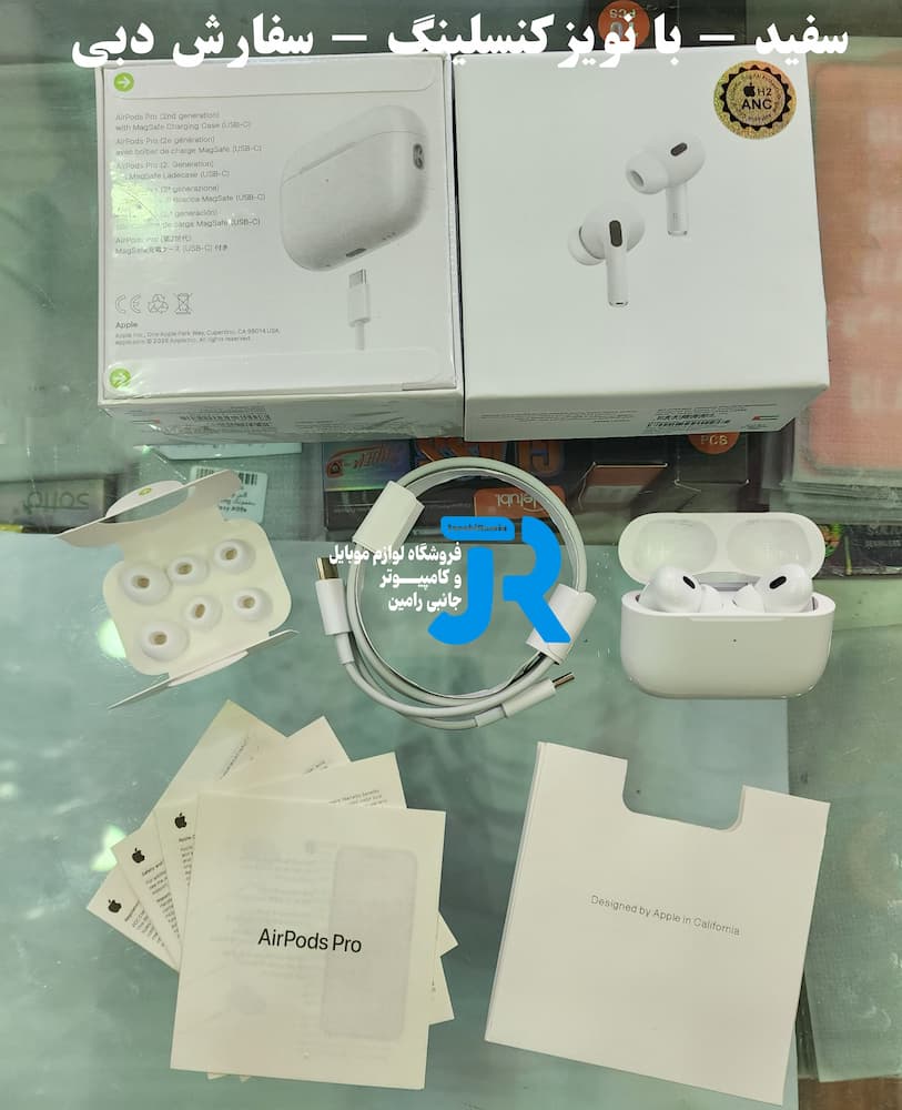 - اقلام همراه کیس شارژر بی سیم - چهار جفت سرگوشی سیلیکونی (سایزهای بسیار کوچک، کوچک، متوسط و بزرگ) - دفترچه راهنما - کابل تبدیل لایتنینگ به USB-C