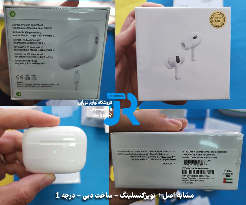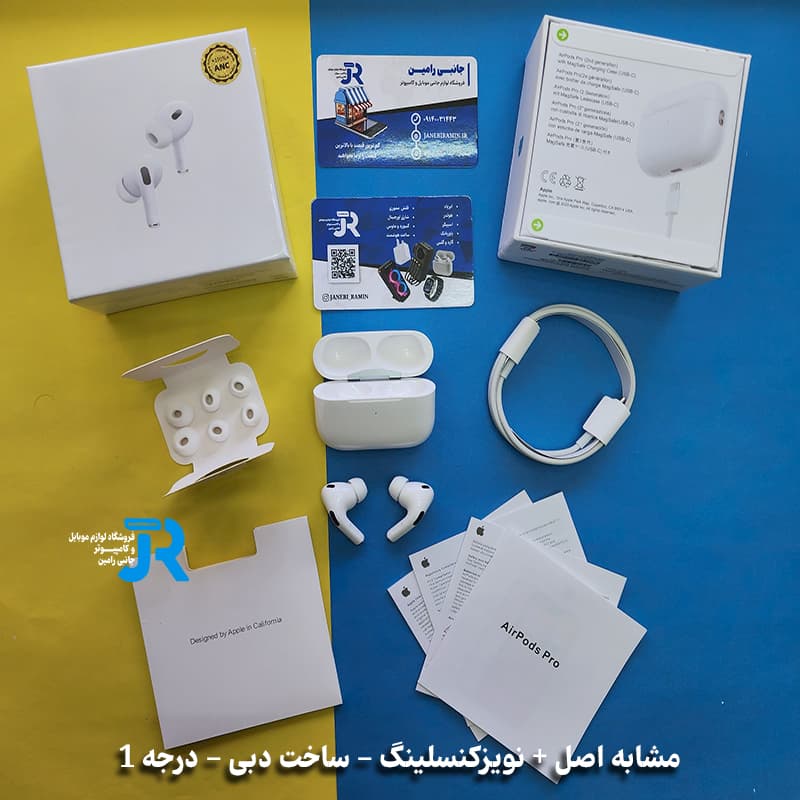 - اقلام همراه کیس شارژر بی سیم - چهار عدد سرگوشی (سایزهای بسیار کوچک، کوچک، متوسط و بزرگ) - دفترچه راهنما - کابل تبدیل لایتنینگ به USB-C - بند آویز(برای نسخه ویتنام)